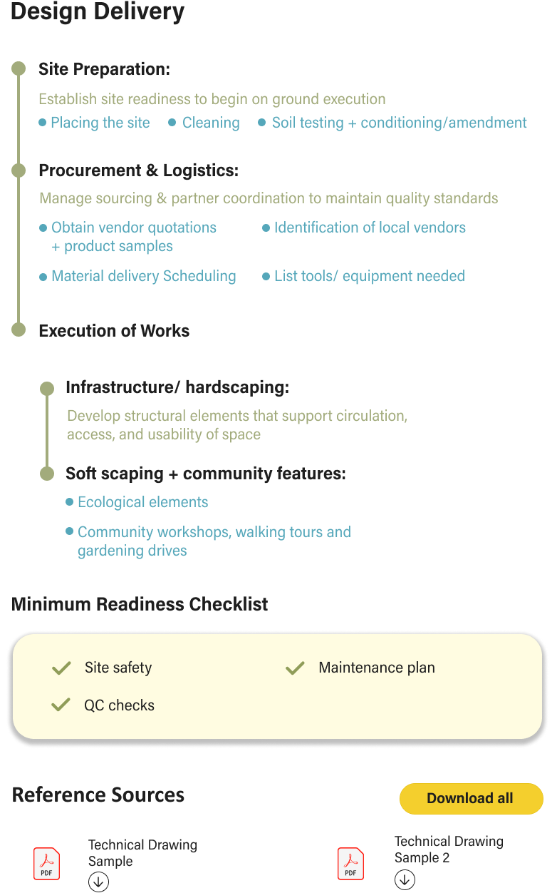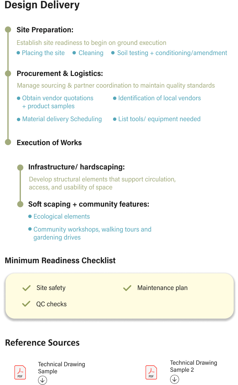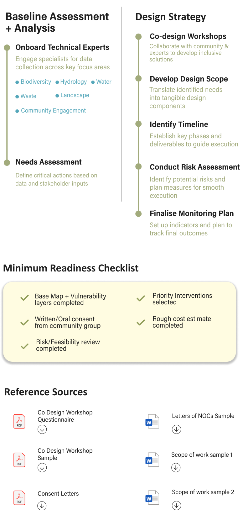 It is a practical guide to help designers, planners, and communities think through every stage of a project – from understanding a place to creating long-term impact. It can be applied at any scale, whether improving a street corner, an informal settlement, or an entire city system.
